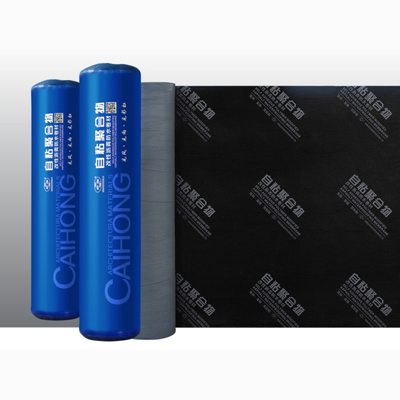 自粘聚合物改性沥青防水卷材使用SBS等合成橡胶、优质石油沥青、增粘剂为基料,以聚乙烯膜(PE)、聚酯膜(PET)、交叉层压膜或隔离膜为上表面覆盖材料,下表面覆以涂硅隔离膜为防粘层之制成的无胎自粘防水卷材。